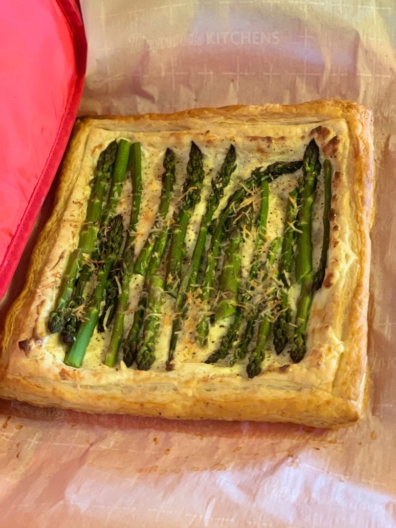 Cheesy puff pastry asparagus tart